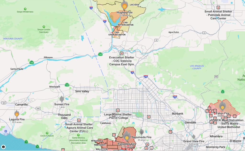 この後はもう何処にも山火事が起こらない事を祈るばかりだと思っていたのだがまた新たな火元が出来た様だ。今度はHughes Fireか、困ったものだ。
