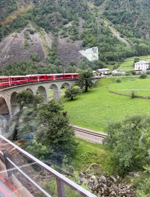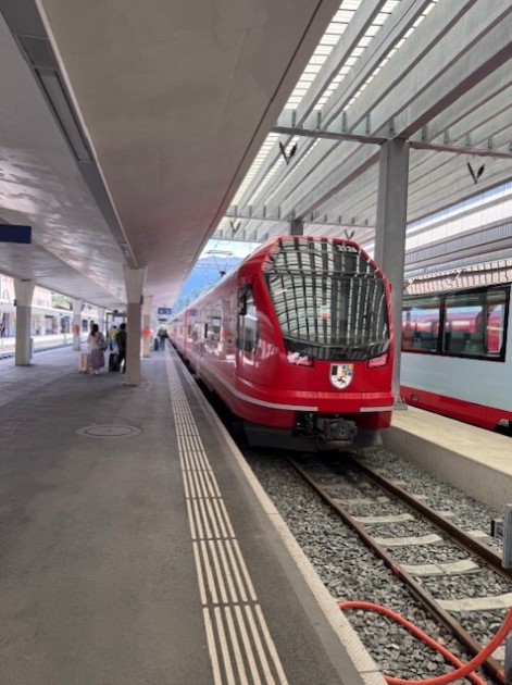 しかし知らなかったのだがこの列車は Bermine Expressと言って世界遺産にも登録された「レーティッシュ鉄道 アルベラ/ベルニナ線」を走る絶景観光鉄道のパノラマ鉄道だったらしい。